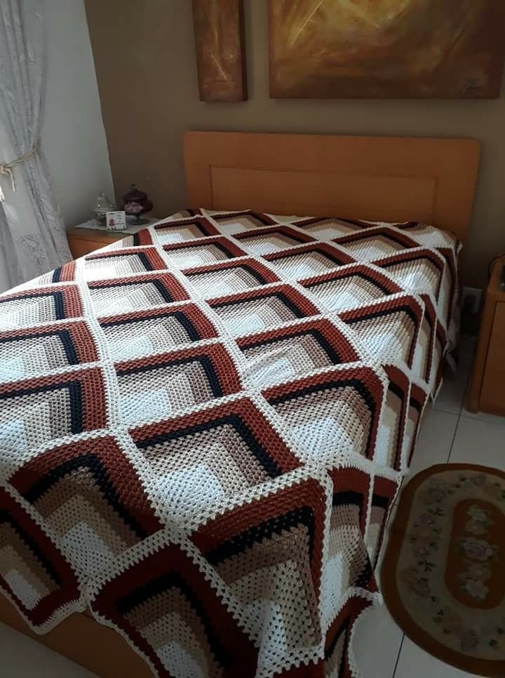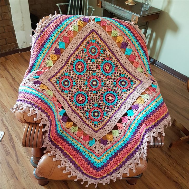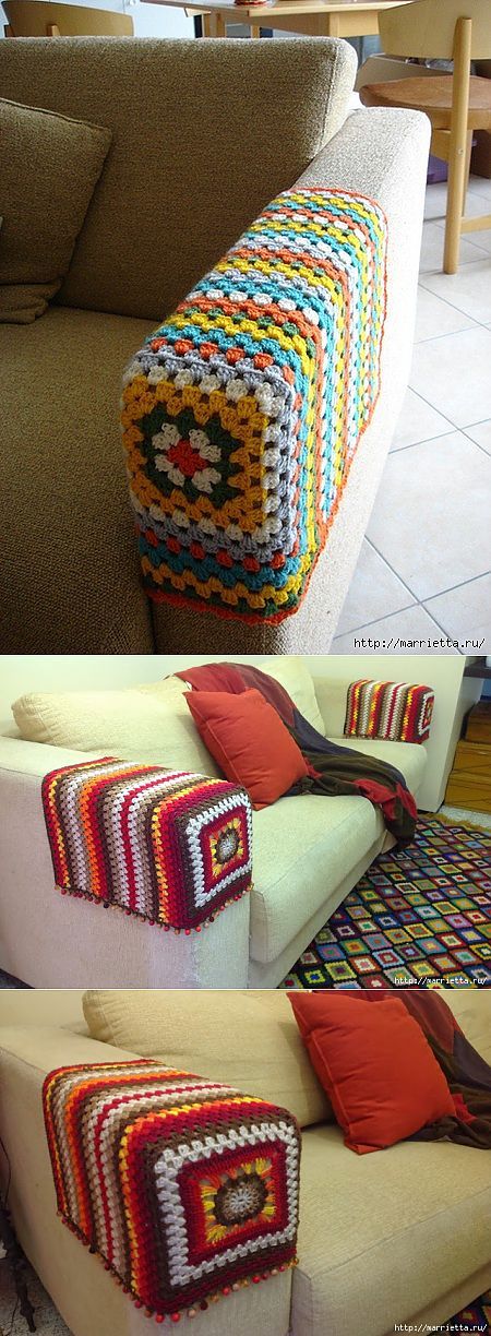 Накидка на кресло связана крючком из 1 кг п/ш пряжи в стиле пэчворк крючком, размер 70 см х 180 см.