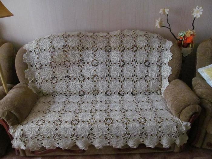Здрасти! Меня зовут Анна. Выставляю на ваш трибунал свою работу. Ажурная накидка связана из хлопка, крючок номер 3. Вяжется просто и стремительно!