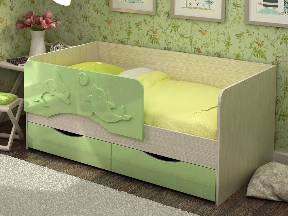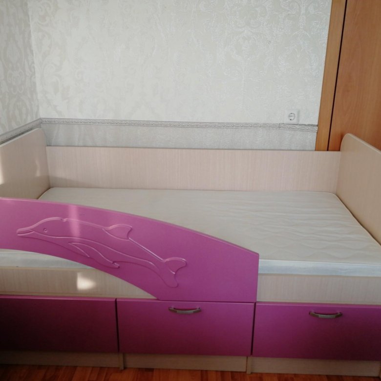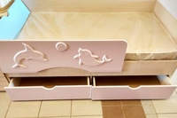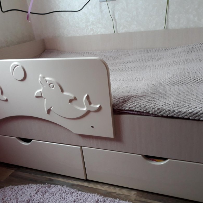 Бежевая кроватка Дельфин в интерьере комнатыРозовая кроватка Дельфин для девочкиРозовая кроватка для девочкиКроватка Дельфин в интерьере комнатыЗеленая кроватка ДельфинДетская кровать дельфин с ящиками – удобный вариант оборудования индивидуального спального места для ребенка. Явным недостатком можно признать лишь наличие в кровати заостренных ребер на спинках. Следует обратить на это внимание, если малыш гиперподвижный.