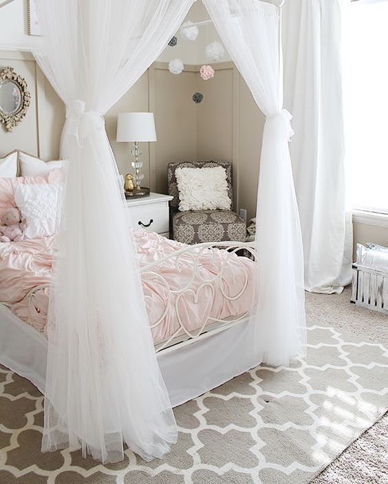 Балдахин в детской комнате поможет девочкам почувствовать себя настоящей принцессой.