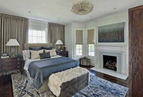 Источником тепла в комнате может стать и камин, который лучше расположить со стороны подножья кровати