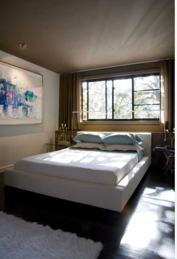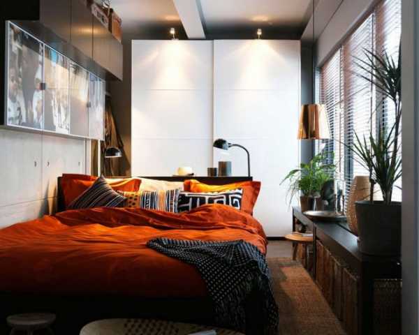 Отдельного внимания заслуживает узкая спальня на одного человека. Как поставить кровать в таком случае?