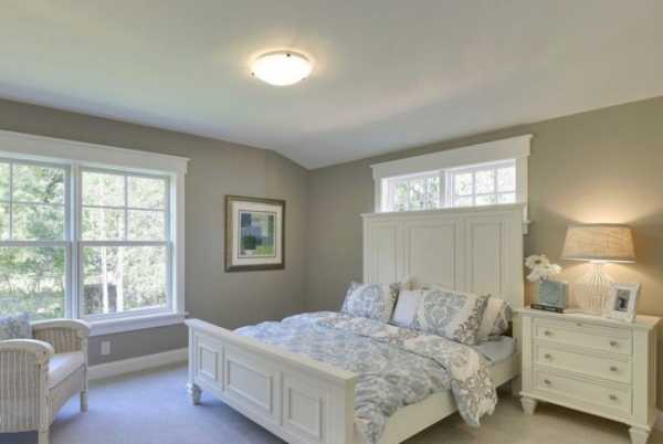 Установку кровати изголовьем к окну можно предусмотреть еще на этапе строительства. Для этого стоит выбрать угловую комнату и установить узкие окна как можно ближе к потолку