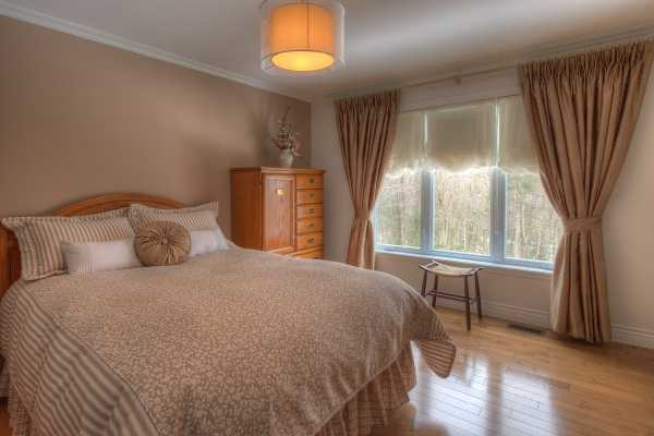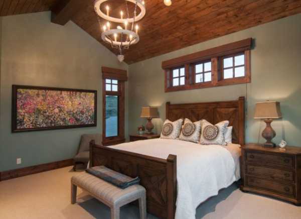 Кровать изголовьем к окну может стать единственным возможным вариантом для загородного дома