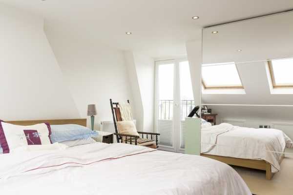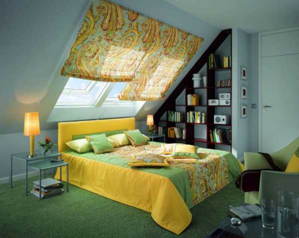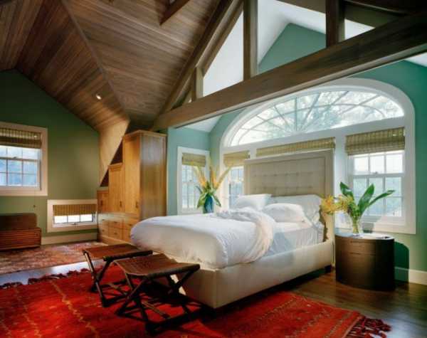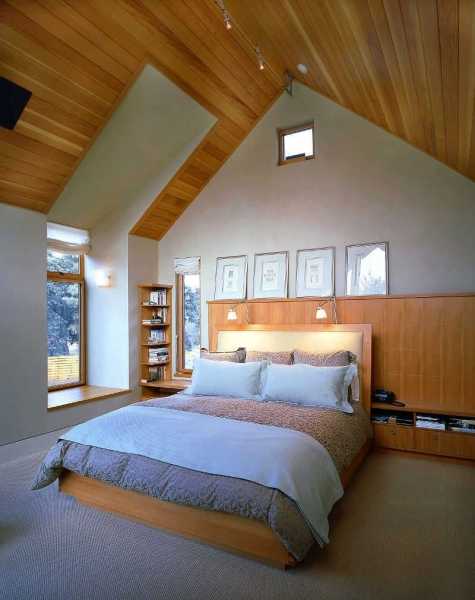 Спальня в мансарде предусматривает установку кровати изголовьем к окну