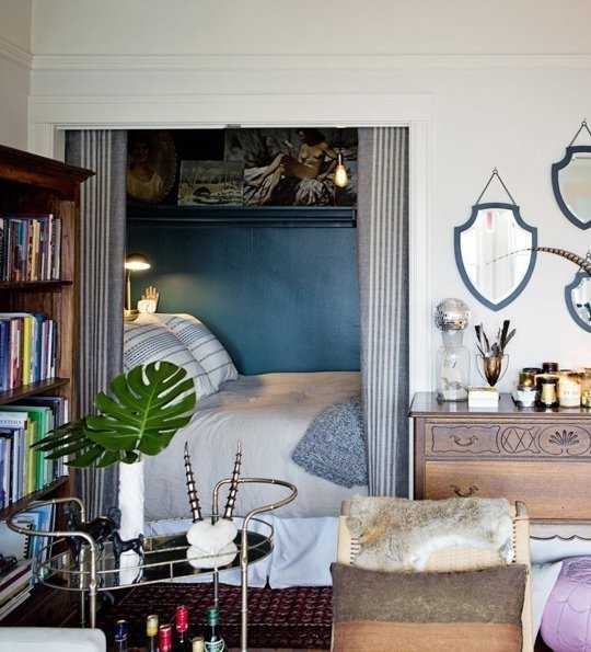 Каким бы маленьким не было помещение, постарайтесь уместить хотя бы самую небольшую, но полноценную кровать с матрасом, а не диван. Я уверенна, что при желании место найдется всегда. Приведу примеры, когда размер спальни буквально 2-4 квадратных метра, но и туда удается поместить кровать. Здоровая спина — прежде всего!