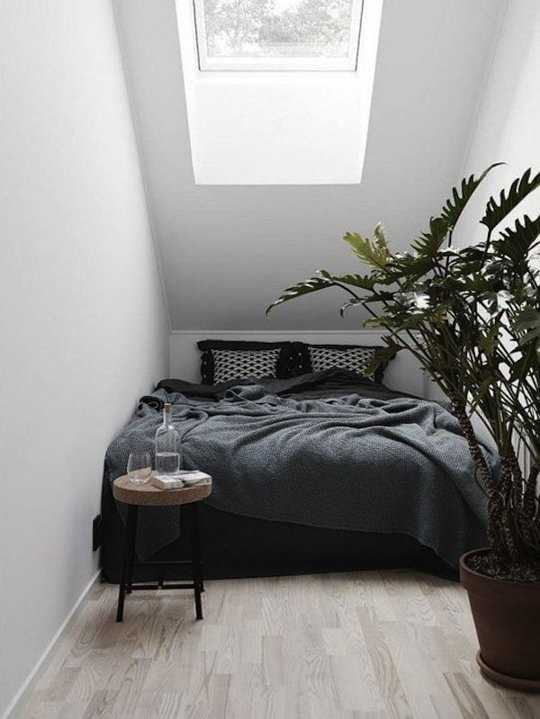Если вы решите организовать на мансарде спальное место, то помните, что чаще всего на скошенном потолке располагается окно. Смело установите под ним кровать. Такое расположение позволит вам любоваться звездным небом перед сном, а просыпаться вы сможете от ласковых солнечных лучей.