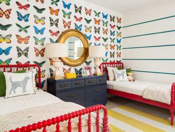 Симметрическое расположение кроватей изголовьем к окну в детской комнате может стать умелым дизайнерским приемом