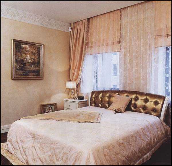 Как оформить окно?Часто кровать располагают изголовьем к окну. При этом оконный проем лучше оформить с помощью рулонных или римских штор, управлять которыми можно, не вставая с кровати. А, изготовленные из плотных тканей, такие занавеси отлично защитят спальню он яркого солнца и нежелательных взглядов с улицы. Кроме этого, такие шторы прекрасно сочетаются с другими видами портьер.