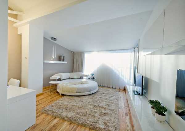 Некоторые не учитывают особенности нестандартной планировки помещения, из-за чего теряют квадратные метры, которые могли бы использовать. Например, в комнате с закругленными стенами и несколькими окнами кровать лучше разместить у окна, нежели подбирать для этого глухую стену.