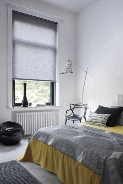 Выше мы уже говорили, что шторы защищают от света, любопытных глаз, шума. Также они могут и спрятать неудачный вид за оконной рамой и дополнить интерьер спальни. В последнее время особой популярностью пользуются рулонные шторы. Небольшая цена, богатый ассортимент и практичность — то, что привлекает покупателей. К тому же можно выбрать плотность ткани, чтобы сбалансировать уровень освещения. Внешне рулонные шторы выглядят простовато, поэтому дизайнеры советуют сочетать их с другими типами занавесок.