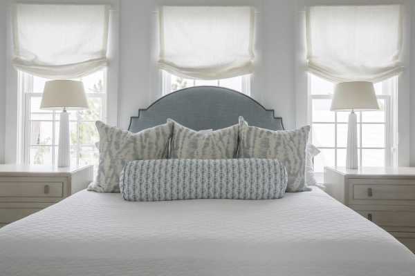 Римские шторы в спальне — лучший вариант для тех, кто желает установить кровать изголовьем к окну