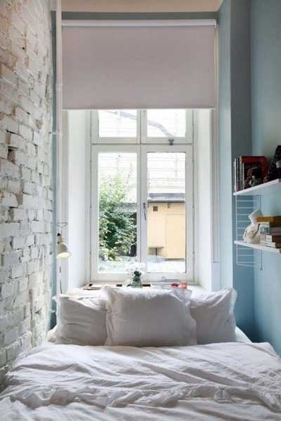 Кровать изголовьем к окну в маленькой комнате — единственный возможный способ сэкономить место