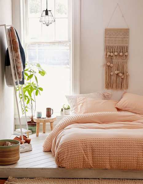 Некоторые считают, что кровать возле окна мешает поливать цветы, мыть стекла, вытирать пыль на подоконнике или раздвигать шторы. Решить эту проблему можно, разместив кровать на расстоянии 15-20 см от окна.