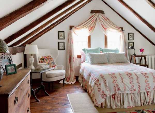 Особенно романтично кровать изголовьем к окну смотрится в маленьких спальнях в мансарде