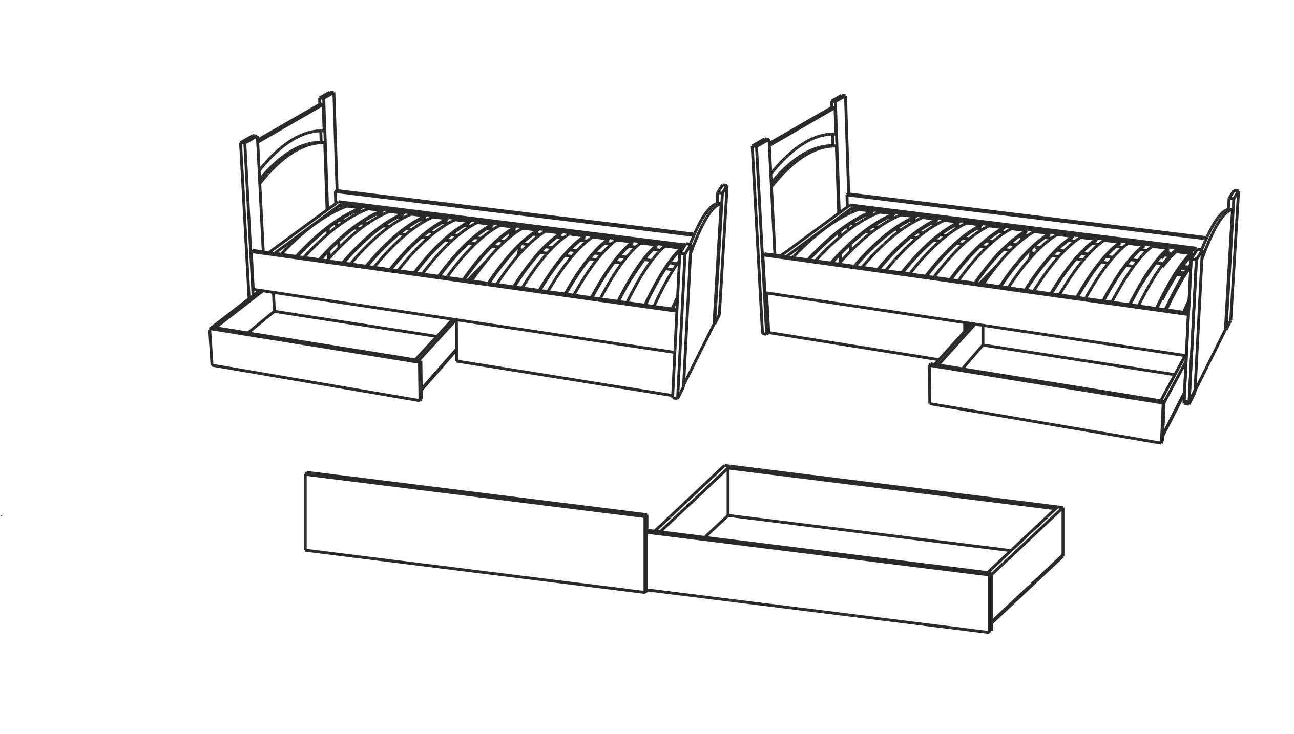 Высота матраса 200 мм. В результате высота конструкции кровати с матрасом будет 330 мм. Чтобы при выкатывании кровати не появилось трудностей, сторону настила можно в дополнение закрепить жесткими ребрами: крест-накрест или продольно.Выдвигающаяся система чертеж