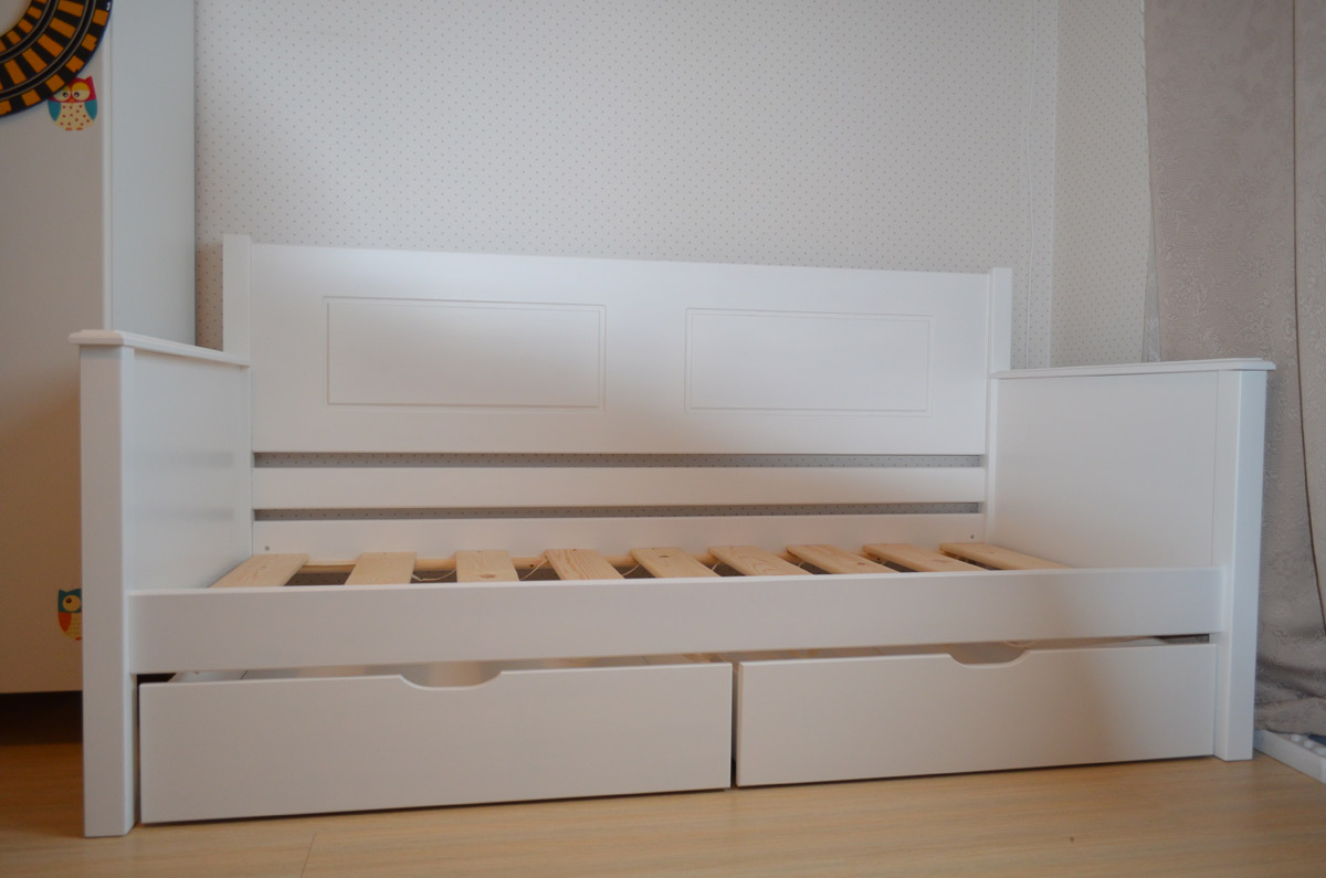 4) Очевидное преимущество: ночью на такой кровати могут спать двое детей, а днем лишняя кровать задвигается и у вас снова одно спальное место;
