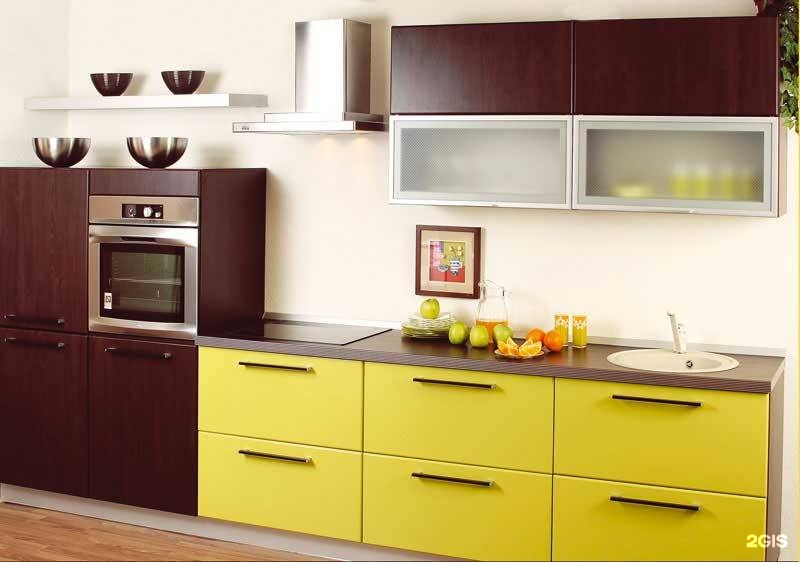 Это экстравагантный цвет, который выбирают для сочетания с разными оттенками.Современные кухни могут быть и однотонные, но чаще всего фасады комбинируют: