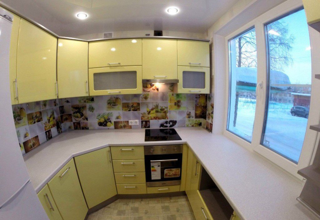 Довольно редко, но все же встречается, что кухня не просто маленькая, а еще и имеет неопределенную форму. Это неудачный, но все же поправимый вариант.