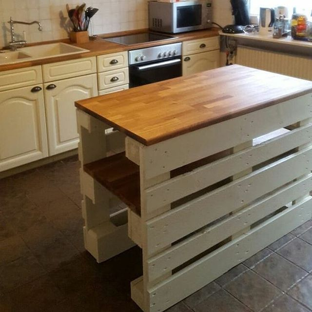 Меня так вдохновила эта великолепная переделка кухни, что я разработал упрощенную версию кухонного острова/бара из поддонов! Я поделюсь с вами планом здания через 1-2 недели.