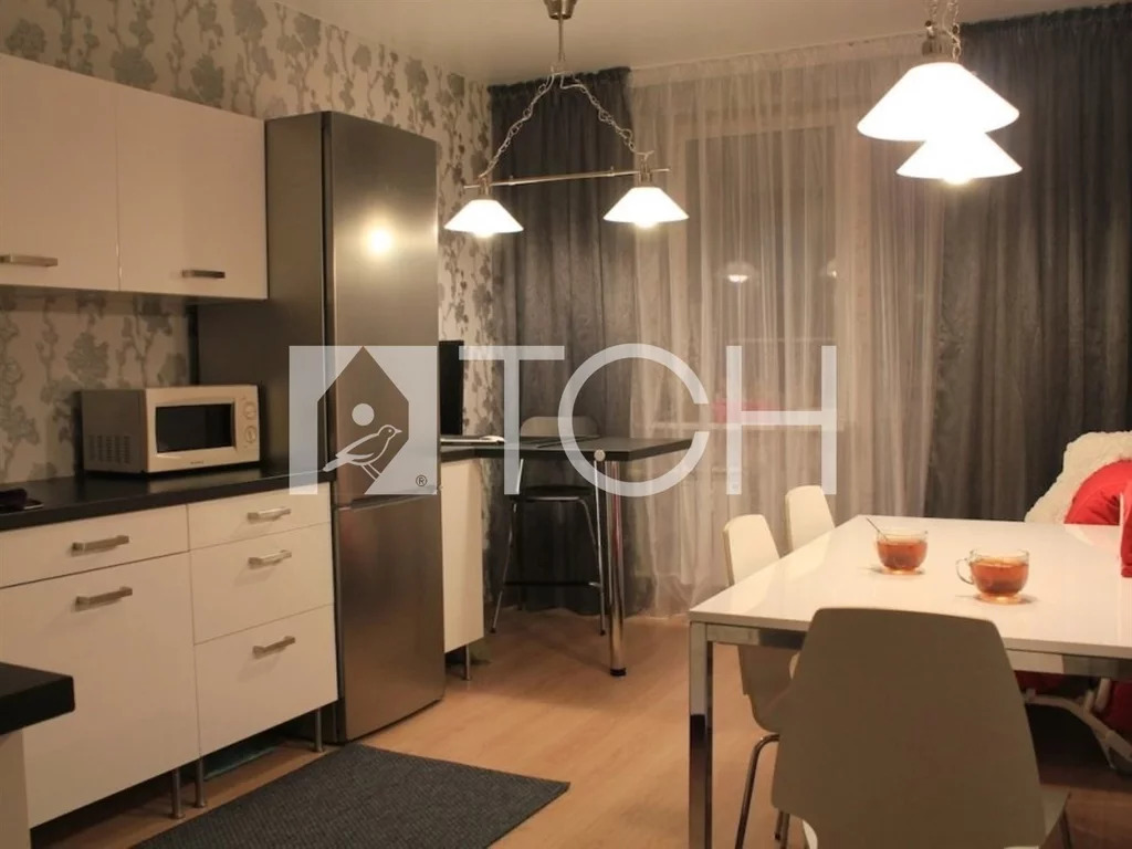 Кухонное пространство можно поднять на подиум по сравнению с гостиной.Такое интерьерное решение выглядит стильно и современно.