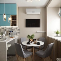 Стол в таком случае стоит или возле дивана, или у окна (если на кухне нет балкона). С балконом планировка немного меняется, но подоконник ведь можно превратить в барную стойку, что тоже многим нравится.