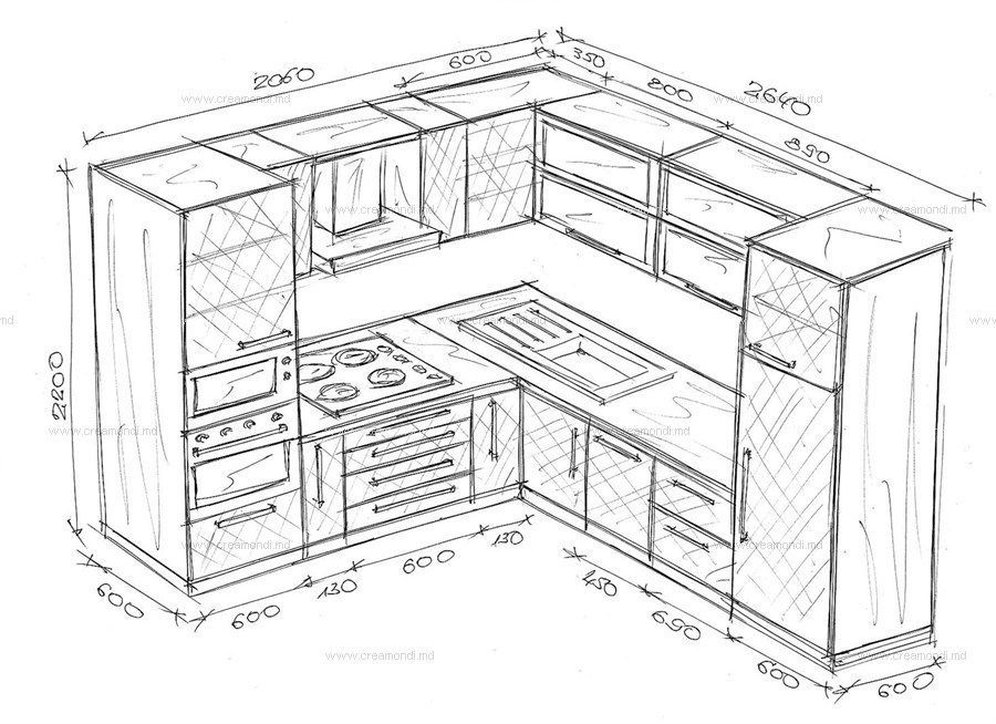 Самостоятельно построить кухонный гарнитур или другие предметы мебели без чертежа невозможно.