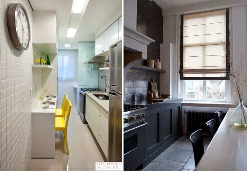 Светлые тона лучше всего подходят для маленькой кухни, а оттенок может быть любым. Современная мода позволяет сочетать причудливые контрасты вроде синего и красного или желтого и фиолетового.