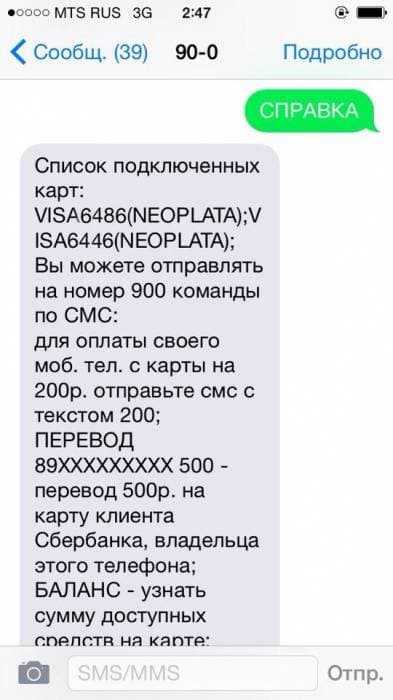 - Следует с мобильного устройства на короткий номер 900 отправить текстовый СМС-запрос.
