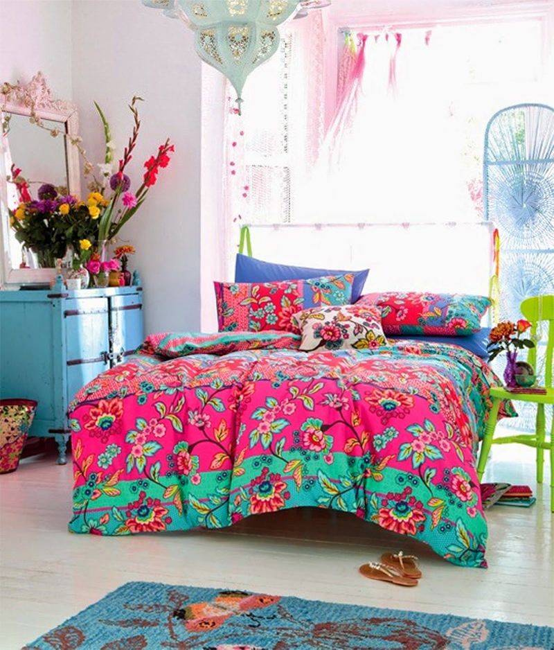 • Обилие пестрого текстиля – обивка мебели, подушки, шторы… Выбирайте восточные и геометрические узоры. Беспроигрышный вариант – зигзагообразный рисунок – он универсален и выразителен. Но нельзя забывать и о пэчворке – лоскутной технике, с помощью которой можно добавить красок.