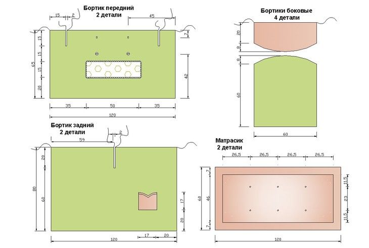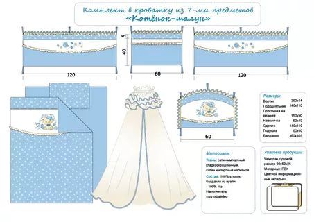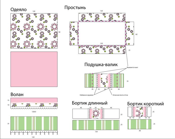 Выкройка бортиков и постельного белья для детской кроватки