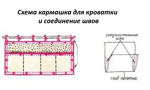 Теперь хочу сшить кармашки на кроватку, на торец, определяюсь с вариантом. Ткани остались как раз. Точно будет что-то простое, чисто утилитарное, без «узоров».