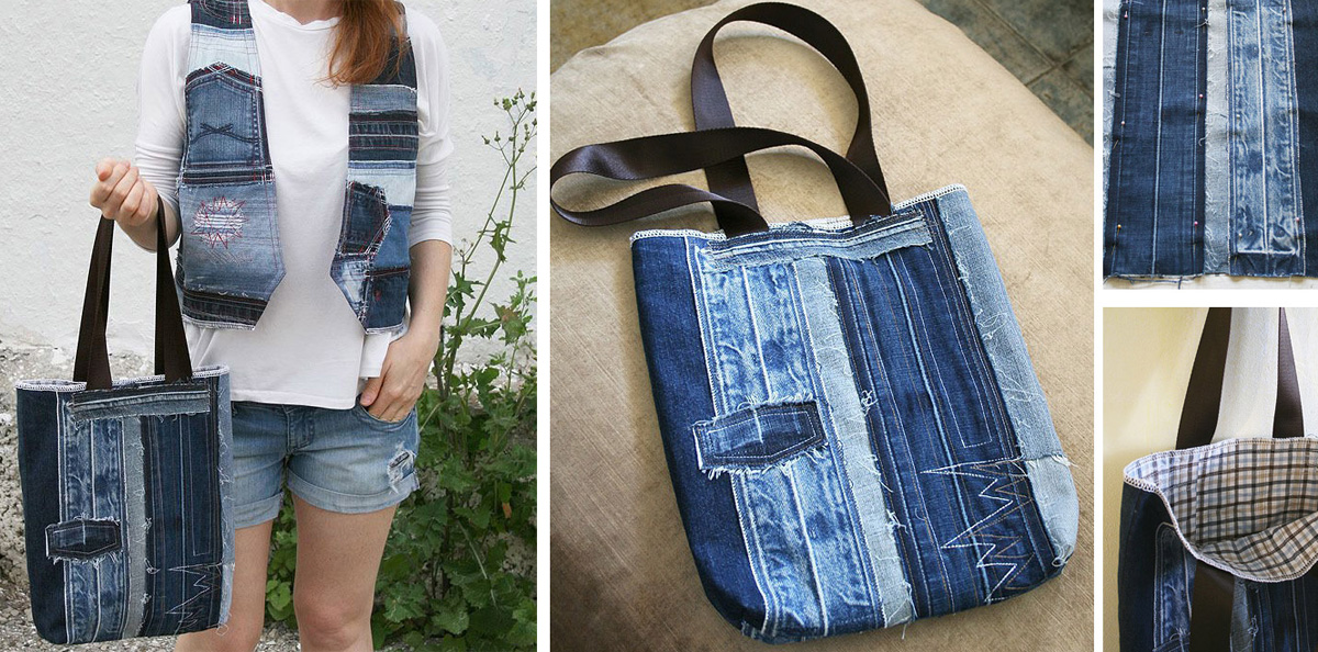 Джинсы легче всего превратить в сумку-шоппер, которую вы сможете брать с собой в магазин за продуктами вместо целлофанового пакета – это дважды экологично, т.