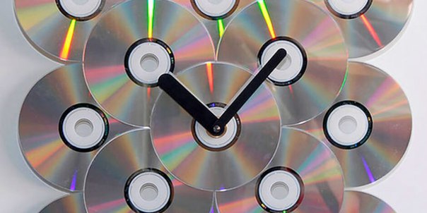 В сети есть бесчисленное множество идей, какие часы можно сделать из старых CD. В этом деле нет никаких ограничений, кроме вашей собственной фантазии. Для изготовления hand made часов необходимо заранее подготовить рабочий механизм от надоевших часов со стрелками, ненужный диск (или диски) и краски, ткани, клей, картон, фотки – словом, всё, что понадобится, чтобы реализовать самые смелые идеи.