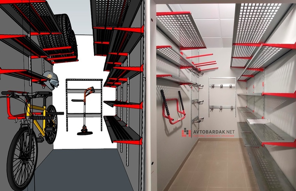 Верхний ярус оснащают открытыми полками для хранения редко используемых вещей