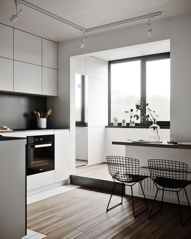 Лоджию также можно задействовать под место отдыха, обеденную зону, барную стойку или разместить на ней холодильник либо духовой шкаф.