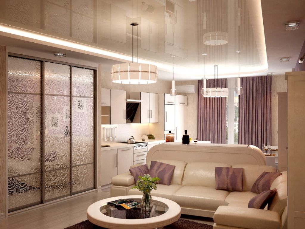 В маленькой квартире будет уместно использование не слишком громоздкой, трансформирующейся мебели, достаточное количество света, отделки в светлых оттенках, зеркальных и глянцевых поверхностей, предоставляющих визуальное расширение пространства.
