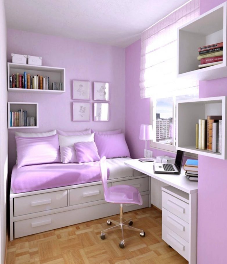 Детская комната маленьких размеров для девочки тоже обязательно должна включать рабочую зону. Пусть она будет компактной, но необходима обязательно.