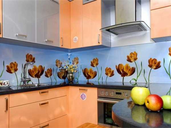 Очень красивый интерьер кухни, фото дизайн которой можно посмотреть на сайте, получается при отделке фартука скиналями. Большие монолитные панели изготовлены из каленого стекла, которое выдерживает любые перепады температур. При помощи широкоформатной печати делают красивое изображение и помещают его с обратной стороны стекла, фиксируя так, чтобы туда не попала вода. Скинали легко моются, на них не образуется грибок, они ударопрочные и влагостойкие. К тому же такое оформление станет настоящей изюминкой любой кухни.