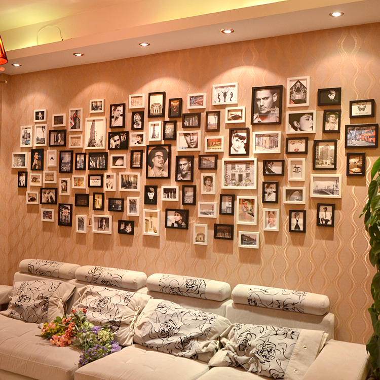 Кстати, большое количество фото на стене скроет заметные ее огрехи. Постарайтесь избегать больших отступов – в остальном все на ваше усмотрение.