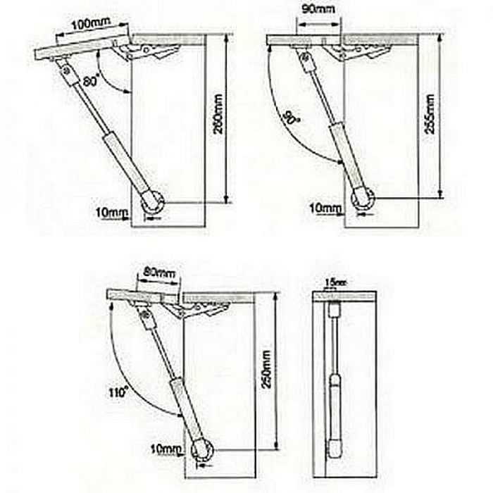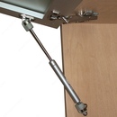 Размеры газлифта будут зависеть от толщины удерживаемой дверцы. Перед установкой газлифта важно определиться, на какой угол будет открываться вверх дверца. На боковые стенки шкафчика и дверцы на нужном расстоянии устанавливается крепеж. После навешивания фасада надавливанием головки на крепеж до щелчка монтируется газлифт. Закрытый фасад регулируется при помощи петель. Для избежания перекоса массивной дверцы, опытные мастера советуют монтировать два газлифтовых доводчика симметрично по обеим сторонам корпуса.