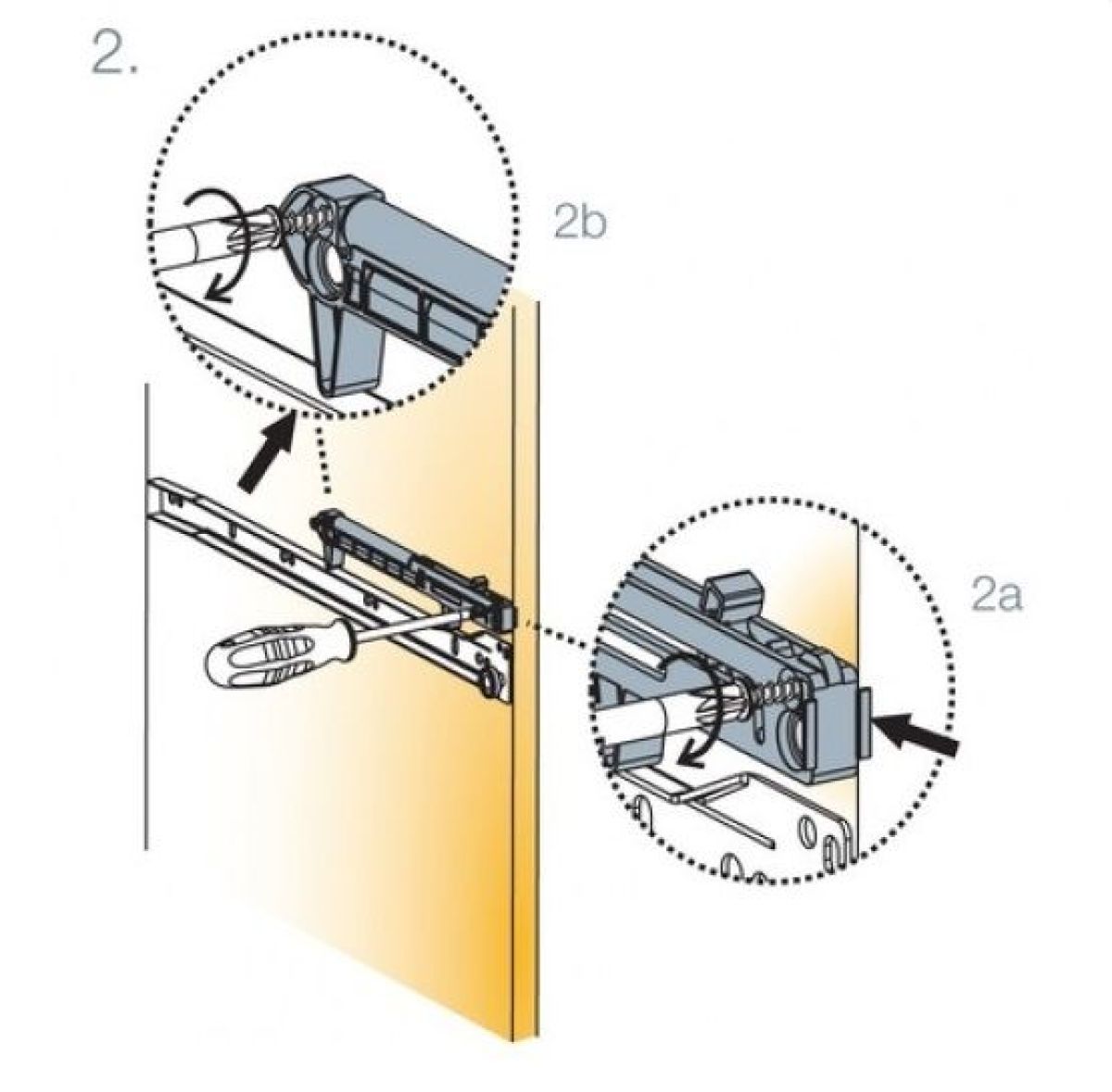 Или, например, при регулировке по высоте, нужно ослабить саморезы, которыми крепится к коробу ответная планка, поднять или опустить фасад, после чего, эти саморезы зафиксировать.