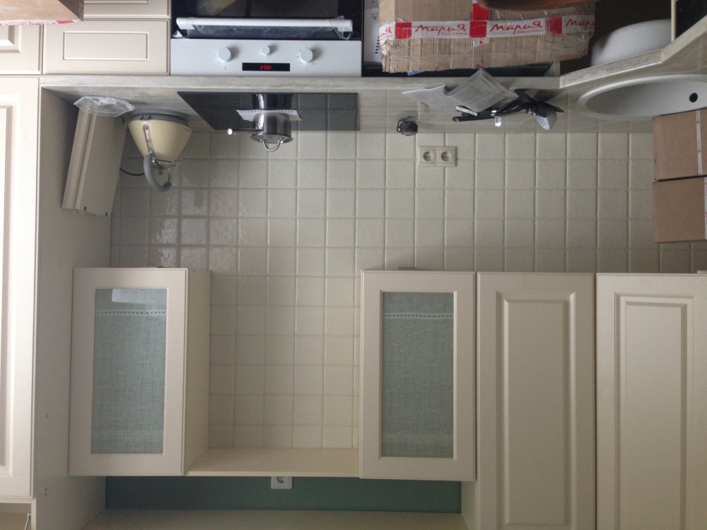 Когда шкаф с мойкой будет установлен, можно переходить к размещению остальных.