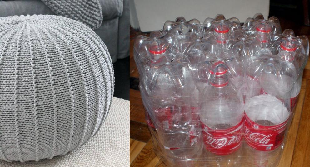 Помимо выбрасывания их в мусорные корзины, всегда можно переработать пластиковые бутылки лучше. Есть много творческих способов перепрофилирования пластиковых бутылок в некоторые полезные предметы домашнего обихода. Их даже можно использовать их для изготовления мебели! Вот отличная идея, чтобы сделать простой пуфик из переработанных пластиковых бутылок. Приложив немного творчества и терпения, получиться сделать полезные вещи из того, что до этого собирались выбросить.