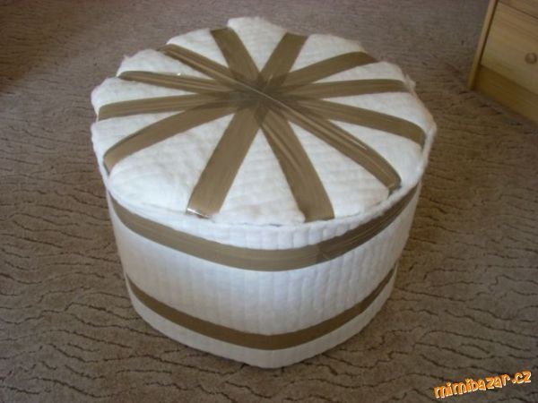 Когда все уже будет готово, можете приступить к изготовлению крышки пуфика. Вырежьте несколько слоев поролона или силикона по размерам крышки. Если же уплотнитель достаточно толстый, то может хватить и одного слоя. Приклейте к крышке уплотнитель и обтяните тканью. При этом учитывайте то, что ткань на крышке не должна быть слишком натянутой. В противном случае сидеть на таком пуфе будет совсем неудобно.