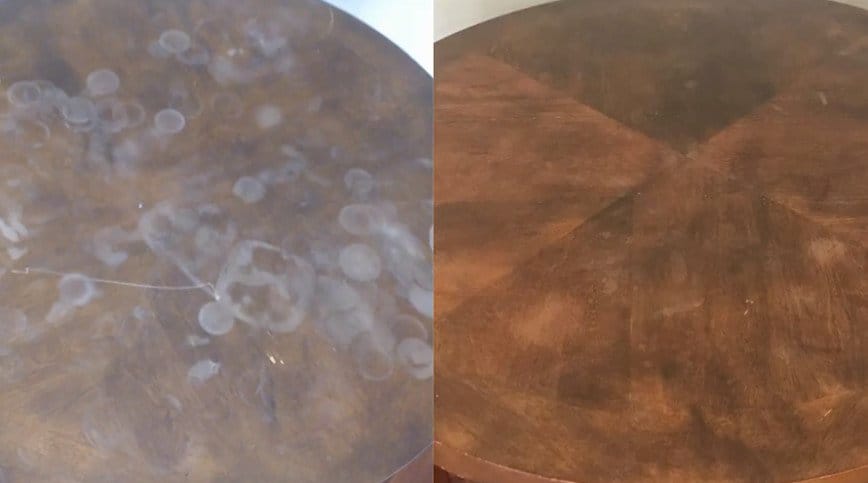 Мы все видели эти термические отметины на дереве. Некоторые люди думают, что белая метка является постоянной, и им нужно заменить эту мебель или закрасить ее.