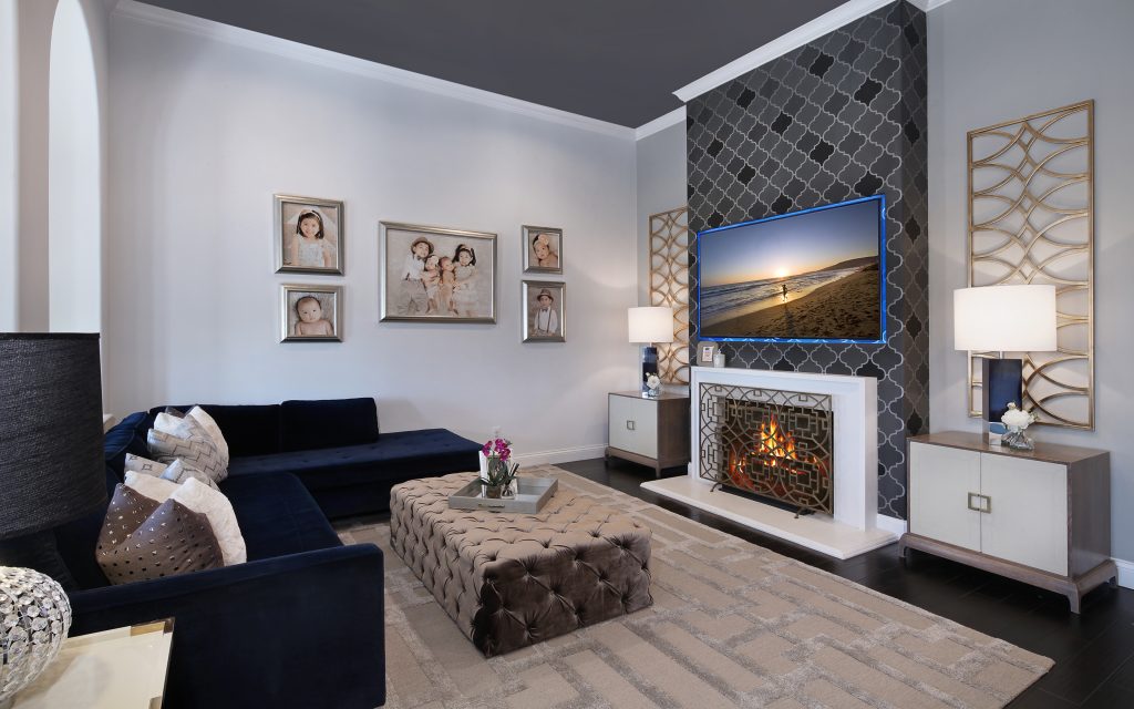 Если вы друг, который всегда принимает гостей, вы знаете, как важно быть готовым к приему гостей в кратчайшие сроки. В этой уютной гостиной есть все классические элементы прекрасного пространства для развлечений: много сидячих мест, высокотехнологичный медиацентр и гладкий минималистский камин для создания атмосферы. Диско-шар — изюминка этой идеальной комнаты для вечеринок.