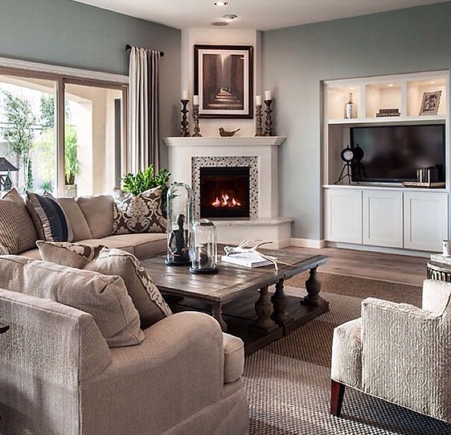 Traditional Living Room With Камин и телевизорРЕКЛАМА