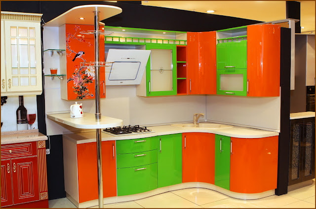 Для тех, кто страдает отсутствием аппетита, можно выбирать фасады яркой цветовой гаммы — лимонные или красные.