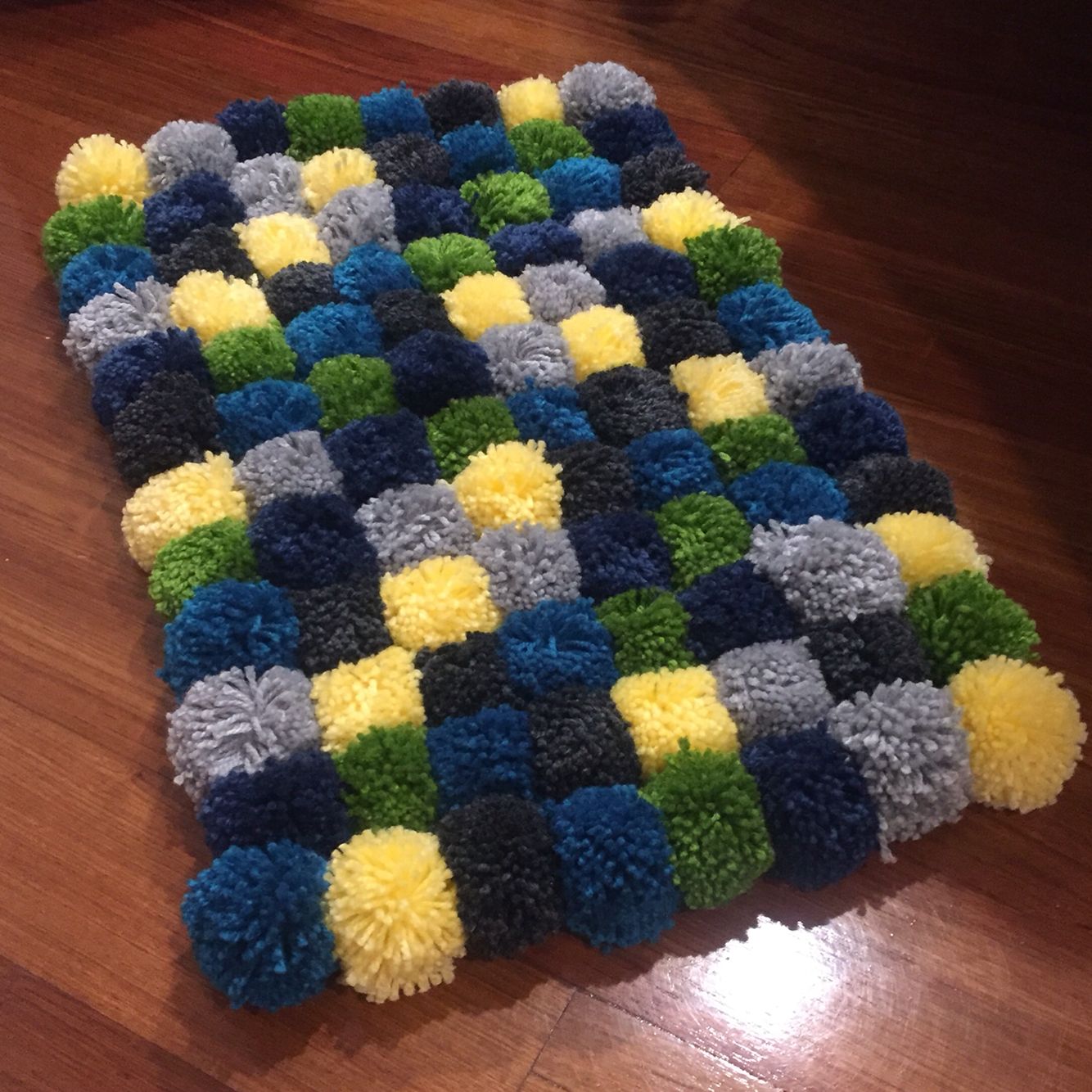 И все! Очень милый и уютный коврик с помпонами. Поскольку он сделан на нескользящем коврике, вы можете разместить его где угодно и не беспокоиться о том, что он поскользнется или поскользнется — он станет идеальным дополнением для украшения любой комнаты.